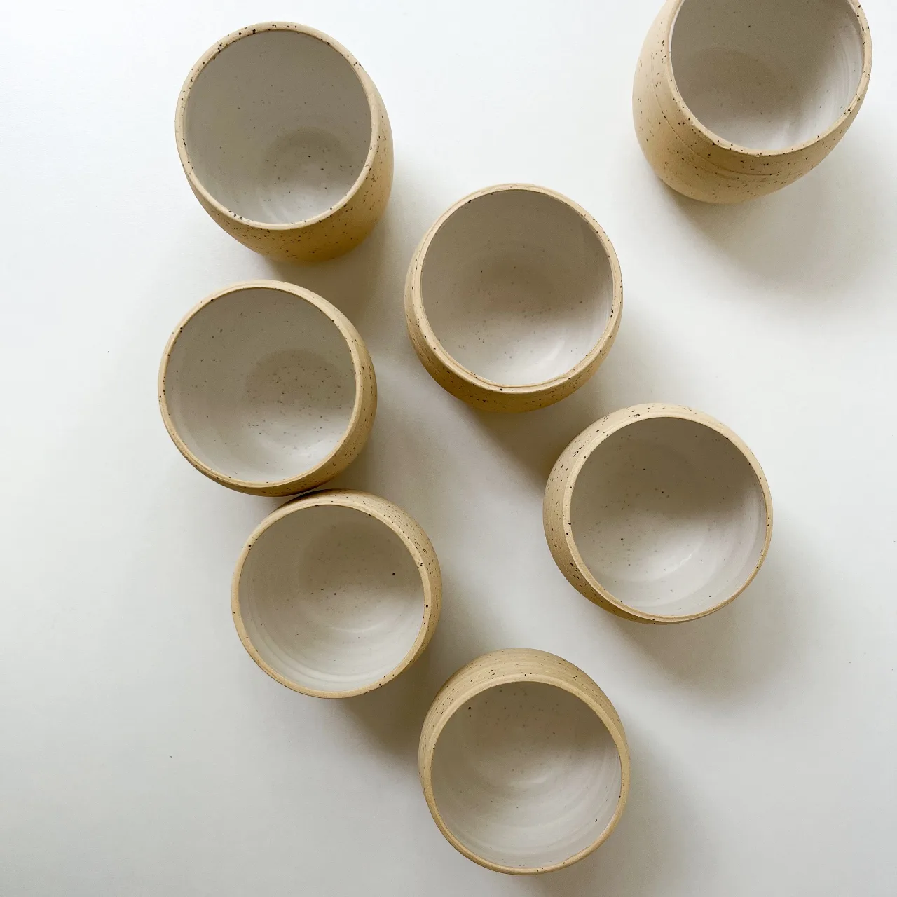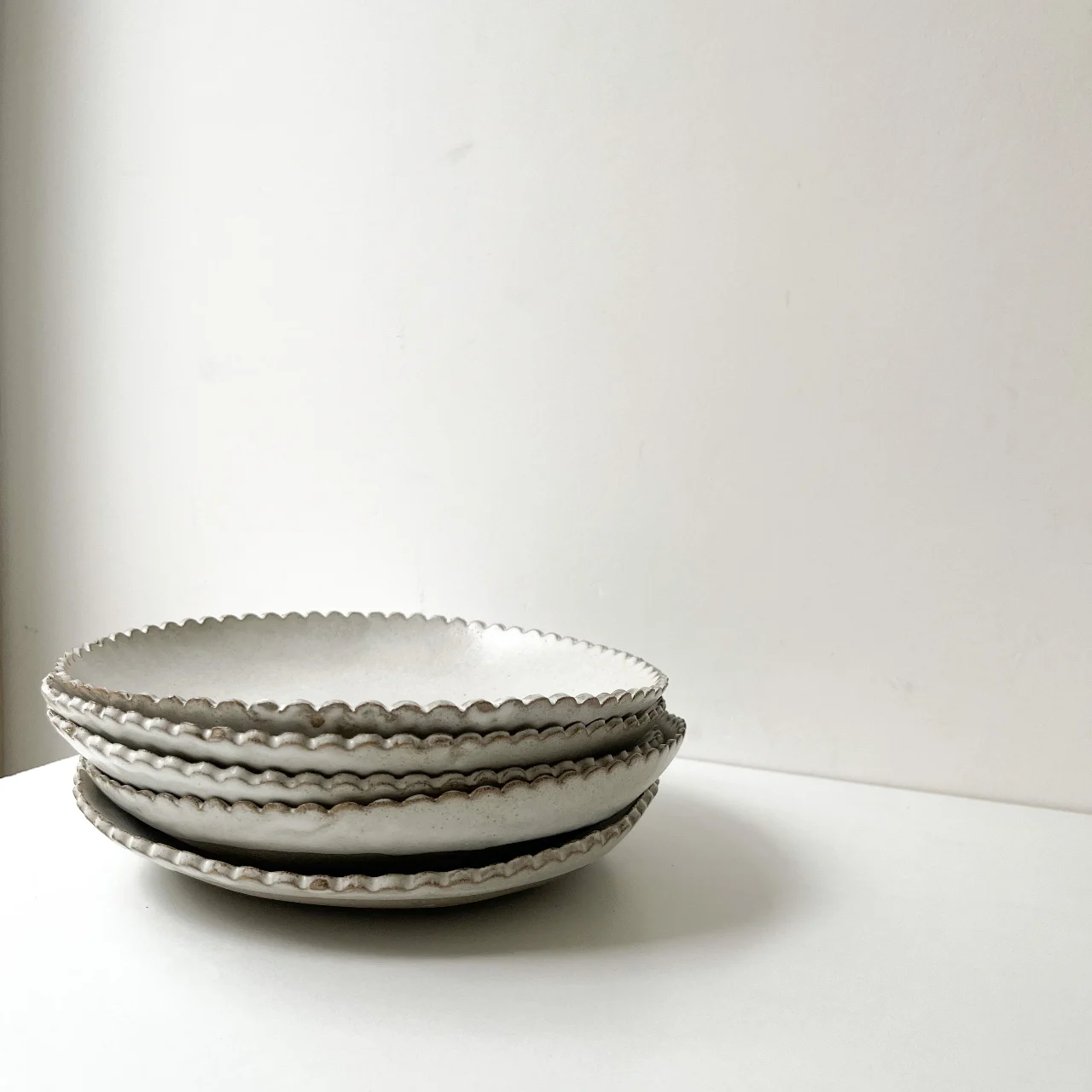 היי אני שירלי, אדריכלית בוגרת בצלאל. הקדרות נכנסה לחיי לפני 15 שנה והפכה לחלק מרכזי בעשייתי המקצועית. במהלך העשור האחרון, בנוסף לעבודתי כאדריכלית, הקמתי סטודיו לקרמיקה הפועל במקביל, מחבר בין שתי הדיסיפלינות ויוצר הרמוניה כוללת של חלל וחומר. החזון המנחה אותי הוא ליצור חללים ואובייקטים שמעבירים תחושה אלגנטית לא מתאמצת, נינוחה ושלווה. אני שואבת השראה מהטבע, מטקסטורות, מהאדמה החרסיתית המקומית, ומשיטות מסורתיות (craft)לייצור כלים. הכלים מיוצרים בעבודת יד, על האובניים או בטכניקה של משטחים. הם מינימליסטים ובעלי קווים נקיים המדגישים את החומר מהם נוצרו. פלטת הגוונים שבהם אני מזגגת ניטראלית ושקטה. אני מחזיקה מלא מצומצם תוך הקפדה על רמת גימור גבוהה. כשנשאלה טושיקו טקאזו (אמנית קרמיקה) מהו החלק החשוב ביותר בעבודתה, היא ענתה: “It is the hollow space within, because it can not be seen but it’s still part of the pot” תפיסה זו מסכמת במדויק את עבודתי בשני התחומים. לכבוד הוא לי לייצר עבורכם כלים בהם תשמשו בריטואלים היומיומיים ויהוו חלק מהסיפור שלכם.